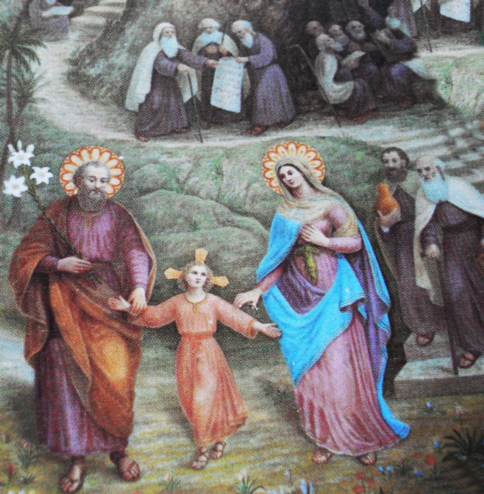 Chefe da Sagrada Família, São José era todo carinho para Jesus e Maria quando ainda vivia na terra; agora no céu "está José no meio de Jesus e Maria como uma estrela brilhante" e - continua a Santa no êxtase - "concede uma proteção especial às almas que militam sob o estandarte de Maria".