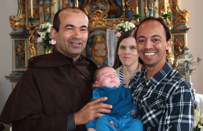 (Foto: Frei Petrônio de Miranda, O. Carm, Eduardo Valim, Prior da Ordem Terceira do Carmo de São João del Rei-MG, esposa e filho neste domingo, 7).