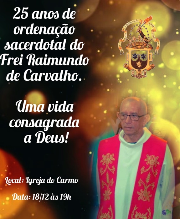 FREI RAIMUNDO, CARMELITA: 25 Anos de Ordenação Sacerdotal. Celebração em Cachoeira-BA, nesta quarta, 18 de dezembro. Fotos: Léo/ Cachoeira. www.instagram.com/freipetronio