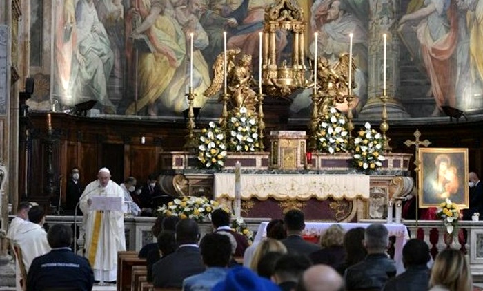 A missa foi realizada em uma igreja próxima à Praça de São Pedro. Entre o público, com cerca de 80 pessoas por causa das medidas de prevenção ao coronavírus, havia presos de dois presídios de Roma e de um centro de detenção de jovens, assim como refugiados da Síria, Nigéria e Egito e profissionais da saúde de um hospital próximo.