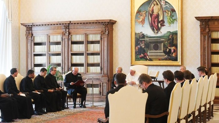 O Papa Francisco recebeu em audiência, nesta segunda-feira (07/06), no Vaticano, os sacerdotes do Colégio de São Luís dos Franceses, em Roma.