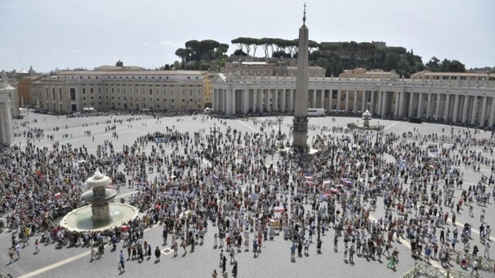 "Obrigado por sua presença e por sua visita. Levem a mensagem do Papa a todos. A mensagem do Papa é que rezo por todos, e peço que rezem por mim unidos em oração", disse o Papa aos fiéis reunidos no Pátio São Dâmaso, no início de sua catequese.