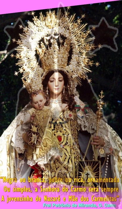 “Negra ou branca, pobre ou rica, ornamentada ou simples, a Senhora do Carmo será sempre a jovenzinha de Nazaré e Mãe dos Carmelitas”. Frei Petrônio de Miranda, O. Carm.