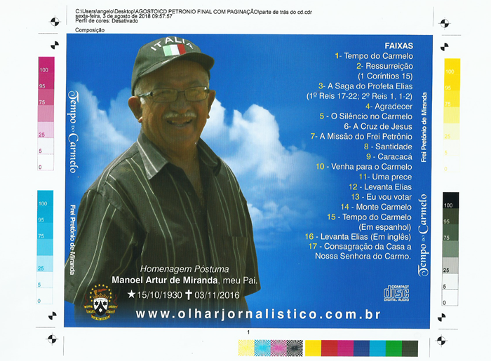 Neste dia dos pais, apresento o meu novo trabalho- CD Tempo do Carmelo- com uma homenagem Póstuma ao meu Pai, Manoel Artur de Miranda, In Memoriam (*15/10/1930 + 03/11/2016). Em breve você vai poder adquirir este trabalho. Aguarde!