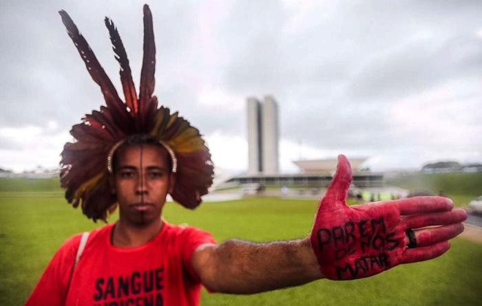 “A cruz e a espada foi, e continua sendo um sinal de morte e dor para os povos indígenas do Brasil”. www.instagram.com/freipetronio