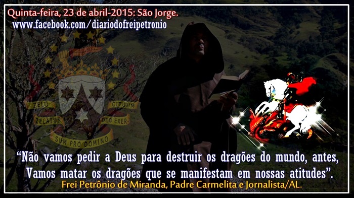 23 DE ABRIL. “Não vamos pedir a Deus para destruir os dragões do mundo, antes, vamos matar os dragões que se manifestam em nossas atitudes”. Frei Petrônio de Miranda, Padre Carmelita e Jornalista/AL.
