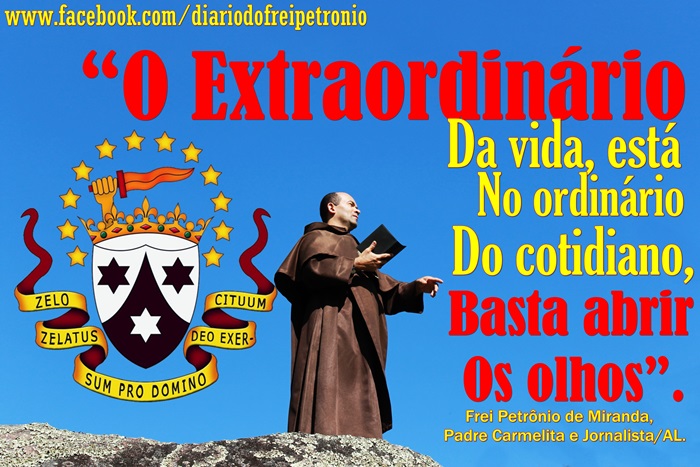 11 DE MAIO. “O Extraordinário da vida está no ordinário do cotidiano, basta abrir os olhos”. Frei Petrônio de Miranda, Padre Carmelita e Jornalista/AL.