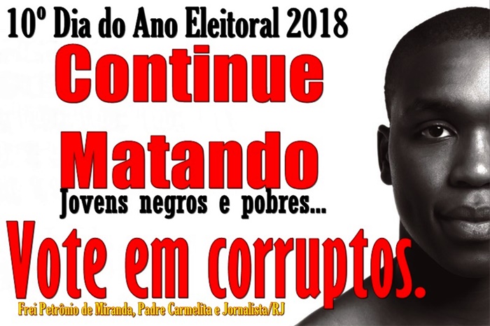 “Continue matando jovens negros e pobres, vote em corruptos”. Frei Petrônio e Miranda, Carmelita/RJ.