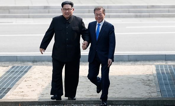 Kim Jong-un e Moon Jae-in participam de encontro histórico em uma área de fronteira desmilitarizada. Guerra entre a Coreia do Sul e do Norte foi interrompida através de um cessar-fogo, em 1953, mas pode ter fim oficial ainda em 2018. Líderes também trataram de programa nuclear da Coreia do Norte. Fonte: http://cbn.globoradio.globo.com