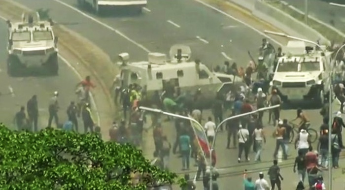 Confrontos aumentam em Caracas e blindado atropela manifestantes que tentam invadir base militar