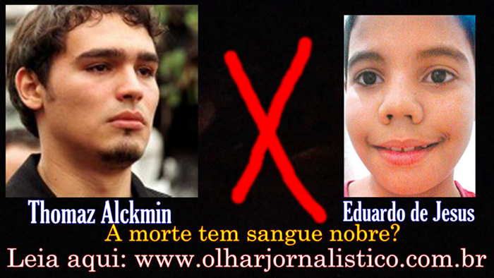 No mesmo dia do assassinato do menino Eduardo, no Complexo do Alemão, os noticiários da televisão levavam a exaustão os detalhes e desdobramentos da morte do jovem de 31 anos, filho do governador de São Paulo, Geraldo Alckmin. A procura pelos culpados do acidente com o helicóptero importava muito e era motivo de auditorias, opinião de especialistas e muita comoção. A morte do jovem Thomaz Alckmin foi a pauta de dois dias seguidos nos telejornais. A morte do menino Eduardo ficou no limpo do discurso recorrente: a polícia está investigando….