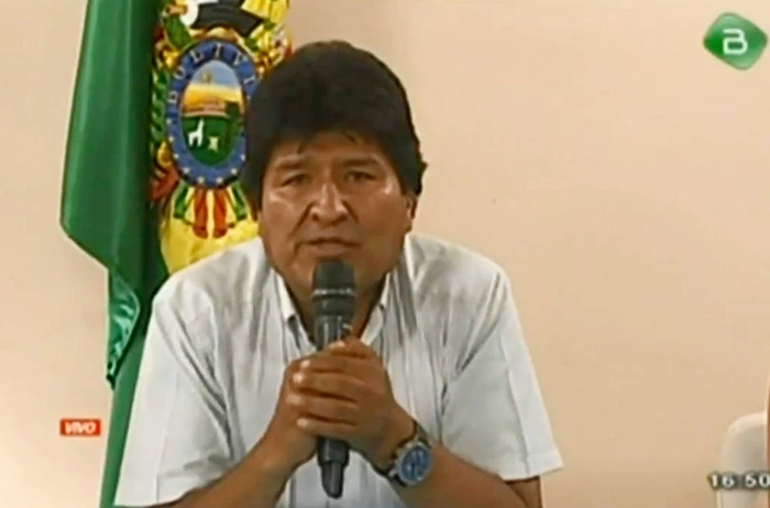Evo renunciou à Presidência da Bolívia em pronunciamento na televisão às 18h (horário de Brasília), feito na cidade de Cochabamba, após pressão das Forças Armadas e protestos intensos nas grandes cidades do país.