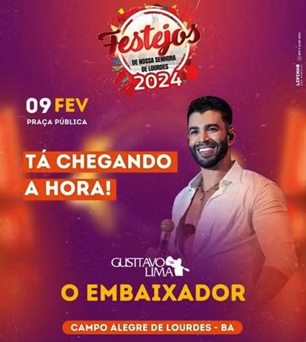 Nas redes sociais da prefeitura, o show vem sendo anunciado com destaque. "Agora é oficial! Dia 09 de fevereiro sobem ao palco do nosso município: Gusttavo Lima, Tayrone e Francildo Silva — Pisadinha do Vaqueiro. Os Festejos de Nossa Senhora de Lourdes estarão repletos de grandes atrações, e você é nosso convidado especial! Esperamos por você! O Centro de Lazer irá tremer", diz uma postagem no Instagram oficial da gestão municipal.
