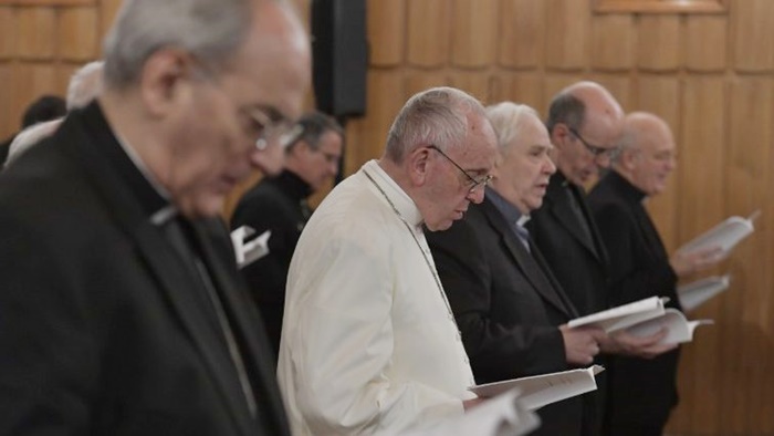 O Papa Francisco e seus colaboradores da Cúria Romana prosseguem os exercícios espirituais na Casa Divino Mestre, em Ariccia.