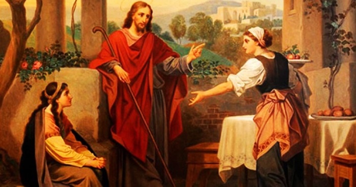 Abraão e Sara souberam acolher com generosidade os três viajantes, mesmo sem os conhecerem. Cena que vai mais além de um quadro simplesmente doméstico, pois foi o próprio Deus quem neles se manifestou. Marta e Maria também souberam receber Jesus, cada uma a seu modo. Escutar sua Palavra é o que importa. Acolher a Palavra sim, mas o que vem antes: servir os irmãos ou acolher a Palavra? É um falso dilema este. Somos convidados a ser Marta e Maria ao mesmo tempo. Caridade e contemplação exigem-se mutuamente.