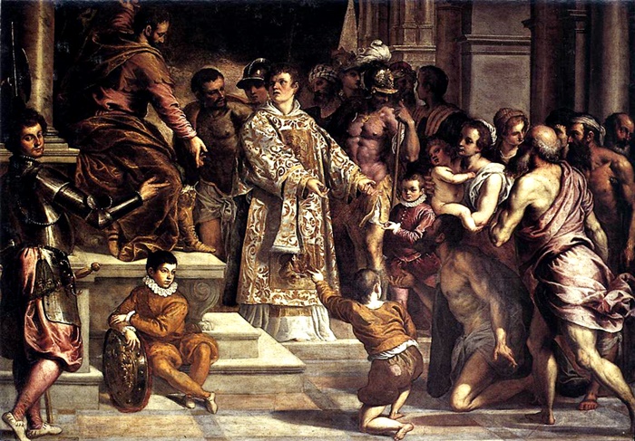 Depois da morte do Papa, o imperador exigiu que a Igreja lhe entregasse todos os seus bens, dentro de 3 dias. Vencido o prazo, São Lourenço apresentou os pobres que eram acudidos pela Igreja e disse ao imperador: Estes são os bens da Igreja. Valeriano, então, com muita raiva, ordenou que Lourenço fosse queimado vivo. O santo manteve a alegria no momento da execução, mostrando sua profunda fé na vida eterna, no encontro com Jesus Cristo. Por isso, no momento mais angustiante de sua vida – aos olhos do mundo – Lourenço, feliz, dizia aos soldados: agora podem me virar, este lado já está assado. Uma multidão acompanhava o martírio de São Lourenço. E, no meio do povo, grande foi o número dos que se converteram a jesus cristo ao verem o testemunho do jovem São Lourenço.