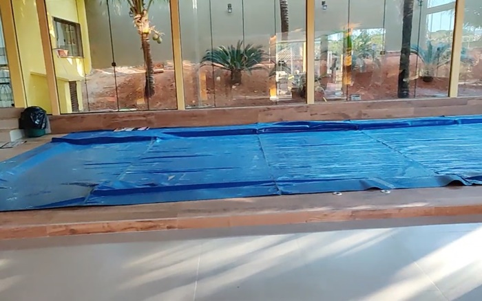 Imóvel onde foi cumprido mandado de busca e apreensão tinha piscina aquecida — Foto: Reprodução