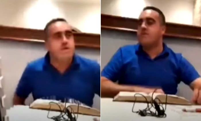 No vídeo é possível ouvir o barulho de um tapa em algo e xingamentos do pastor a uma mulher - que seria sua esposa - que o auxiliava na transmissão