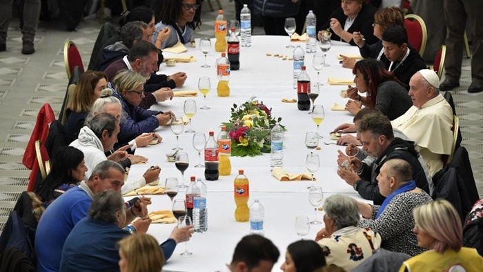 Em seguida, o prelado evidencia que 15 de novembro é o “Dia Mundial dos Pobres” e não “para os pobres”, porque com os pobres não se limita apenas a partilhar parte da riqueza, mas também se recebe algo deles.