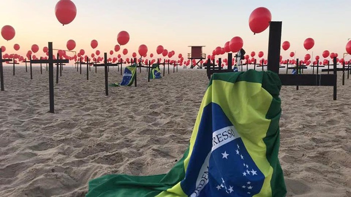 A cruz de Jesus é símbolo maior do protesto de Deus contra sistemas e governos violentos. Na foto, protesto da ONG Rio de Paz em agosto de 2020, pelos então 100 mil mortos (Rio de Paz)