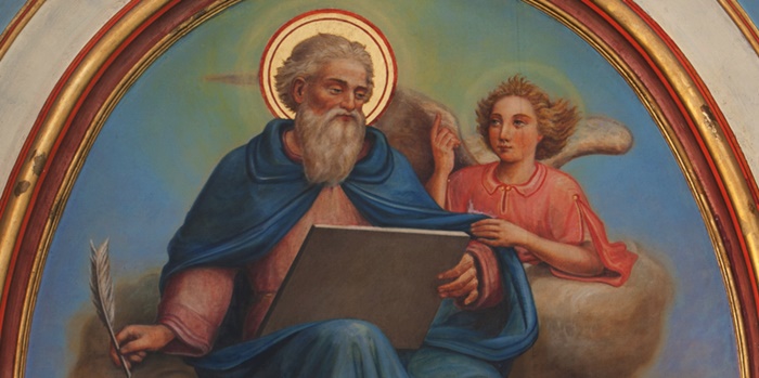 São Mateus era um cobrador de impostos, profissão pouco bem conceituada. Jesus chamou-o a segui-lo. É o próprio Mateus que, de modo muito simples, nos conta a sua conversão (cf. Mt 9, 1-9). Lucas evidencia o banquete oferecido por Mateus, em que Jesus está presente e revela o seu amor misericordioso pelos pecadores. Dotado de certa cultura, Mateus foi o primeiro a recolher por escrito os acontecimentos da vida de Jesus, que testemunhara, agrupando-lhe nesse quadro os ensinamentos do Mestre. O seu evangelho, escrito entre os anos 62 e 70, é especialmente destinado aos seus compatriotas judeus. Apresenta Jesus como o novo Moisés, aquele que dá ao novo Povo de Deus a nova lei do amor. Mateus dá também grande atenção à Igreja que Jesus convoca, salva e institui.