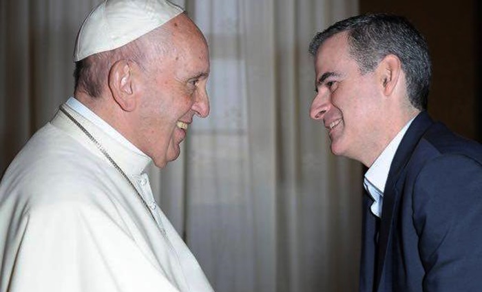 Teólogo Rafael Luciani em encontro com o papa Francisco (L'Osservatore Romano/Arquivo Pessoal)