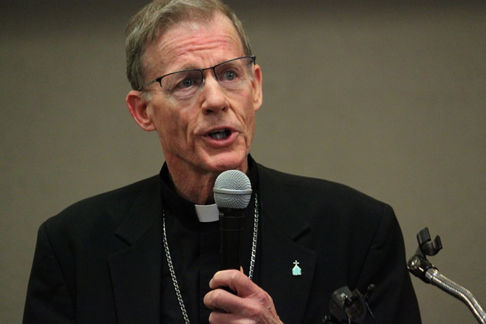 O arcebispo de Santa Fé John Wester no anúncio de falência em novembro de 2018. SUSAN MONTOYA BRYAN (AP)