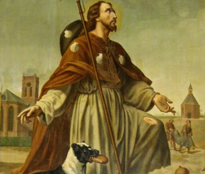 Roque foi encontrado por um cão, que passou a levar-lhe algum alimento todos os dias, até que seu dono, curioso, um dia o seguiu. Comovido, constatou que era seu cão que socorria o pobre doente.