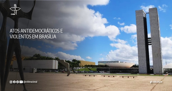 A Conferência Nacional dos Bispos do Brasil (CNBB), perplexa com as graves e violentas ocorrências em Brasília (DF), manifestou-se neste domingo, 8 de janeiro, pelo seu canal no Twitter, sobre os atos antidemocráticos e de vândalos que invadiram e destruíram os prédios públicos, que simbolicamente representam o Estado brasileiro: a sedes do Congresso Nacional, do Supremo Tribunal Federal e o Palácio do Planalto.