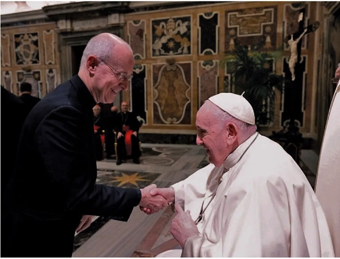 Imagem sem data mostra James Martin e o Papa Francisco — Foto: Reprodução/outreach.faith