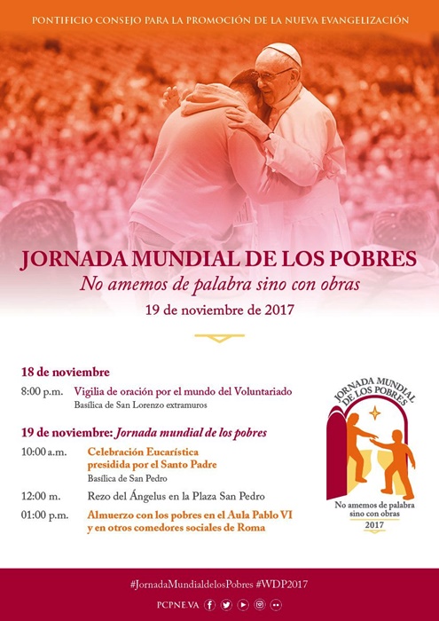 Na preparação do 1º Dia dos Pobres, foi preparado um subsídio pastoral, intitulado “Não amemos com palavras, mas com obras”, traduzido para seis idiomas. Na Itália e no restante do mundo, as dioceses e as paróquias acolheram com entusiasmo o convite do Papa Francisco, com muitas iniciativas em favor das pessoas menos favorecidas. Fonte: http://www.ihu.unisinos.br