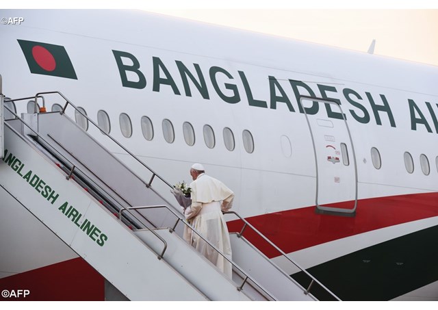 Francisco embarcou pouco depois das 17 horas locais (12 horas em Roma) no voo B777/BIMAN da Bangladesh Airlines, com destino ao Aeroporto de Fiumicino, em Roma, onde a sua chegada está prevista para as 23 horas (horário italiano).