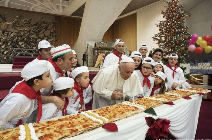 Depois do Ângelus, o líder católico visitou um centro pediátrico do Vaticano, onde soprou as velinhas colocadas em uma pizza. Fonte: http://odia.ig.com.br
