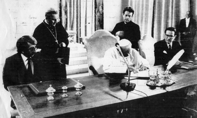 Uma antiga disputa pela posse de Nueva, Picton e Lennox, três pequenas ilhas do Estreito de Beagle, além dos limites do Canal de Drake, por pouco não fizeram Argentina e Chile entrarem em guerra às vésperas do Natal de 1978. No dia 22, quando tropas argentinas já estavam prontas para invadir o país vizinho, chegou de Buenos Aires a ordem para suspender a ação. A trégua aconteceu em atenção a um pedido do então Papa João Paulo II, que assumira o cargo havia apenas dois meses. O Pontífice enviou um de seus homens de confiança, o cardeal italiano Antonio Samore, chefe dos arquivos e da Biblioteca do Vaticano, para auxiliar na mediação e, no dia 8 de janeiro, há 40 anos, os dois países assinaram o Acordo de Montevidéu. Era o primeiro passo para a resolução da controvérsia.