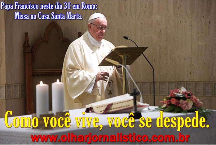 Papa Francisco durante a Missa na Capela da Casa Santa Marta. (30/05/2017). O Papa Francisco celebrou na manhã desta terça-feira a Santa Missa na Capela da Casa Santa Marta. No centro da sua homilia esteve a primeira Leitura tirada dos Actos dos Apóstolos, que se pode intitular - disse Francisco – “A despedida de um bispo”. Paulo se despede da Igreja de Éfeso, que ele havia fundado. “Agora deve ir: