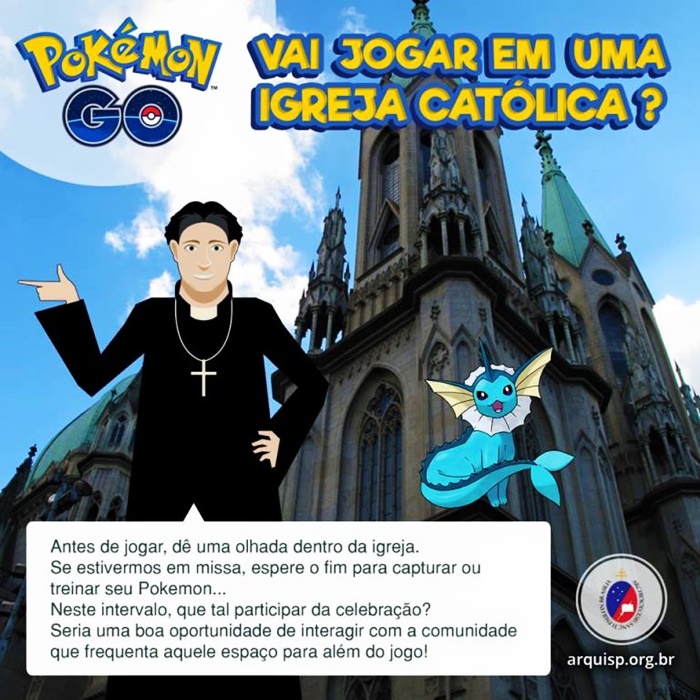 Em uma postagem no Facebook, a Arquidiocese de São Paulo liberou o “Pokémon Go” nas igrejas de São Paulo, mas “sem excessos”.