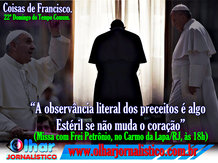 Mas atenção! Com essas palavras, Jesus quer alertar também a nós, hoje, que ao manter a observância exterior da lei seja suficiente para ser bons cristãos. Como à época para os fariseus, há também para nós o perigo de nos consideramos adequados ou, pior, melhor do que os outros pelo simples fato de observar as regras, as tradições, mesmo se não amamos o próximo, somos duros de coração, soberbos, orgulhosos. A observância literal dos preceitos é algo estéril se não muda o coração e não se traduz em atitudes concretas: abrir-se ao encontro com Deus e à Sua Palavra, a oração, buscar a justiça e a paz, ajudar os pobres, os fracos, os oprimidos. Todos sabemos que, nas nossas comunidades, nas nossas paróquias, nos nossos bairros, quanto mal fazem à Igreja e são motivo de escândalo as pessoas que se dizem muito católicas e vão muitas vezes na igreja, mas, depois, na sua vida quotidiana, descuidam da família, falam mal de outros e assim por diante. Isso é o que Jesus condena, porque é um contra- testemunho cristão.