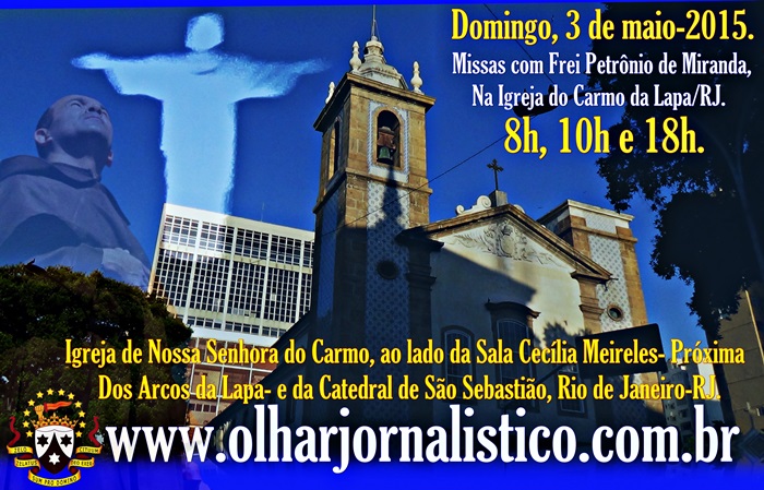 O Frei Petrônio de Miranda, Delegado Provincial da Ordem Terceira do Carmo, convida os irmãos e as irmãs do Sodalício de Vicente de Carvalho/RJ - Paróquia Nossa Senhora do Carmo- Para o Dia de Espiritualidade no próximo sábado, 09 de maio. Convento do Carmo, Lapa, Rio de Janeiro. 05 de maio-2015. DIVULGAÇÃO: www.mensagensdofreipetroniodemiranda.blogspot.com