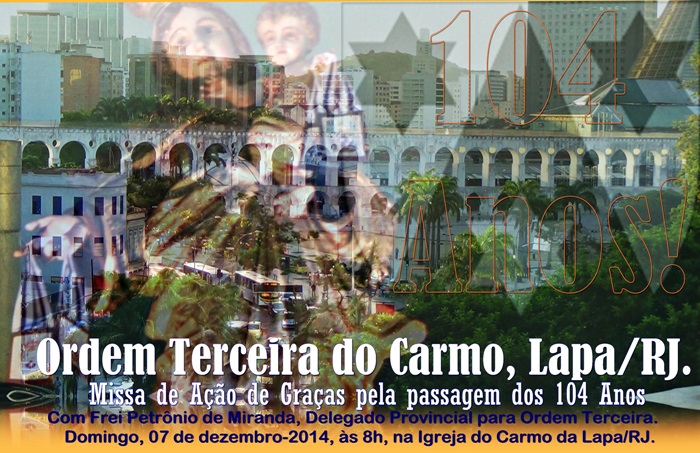 A Missa será presidida por Frei Petrônio de Miranda, Delegado Provincial para a Ordem Terceira do Carmo, na Igreja do Carmo da Lapa, ás 8h, no dia 07 de dezembro-2014. DIVULGAÇÃO: www.mensagensdofreipetroniodemiranda.blogspot.com