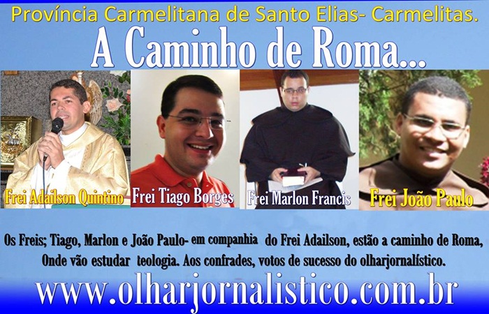 SEJA UM FRADE, UMA FREIRA OU TERCEIRO CARMELITA. Entre em contado com o Frei Petrônio de Miranda. E-mail: Este endereço de email está protegido contra piratas. Necessita ativar o JavaScript para o visualizar. Facebok: www.facebook.com/olharjornalistico