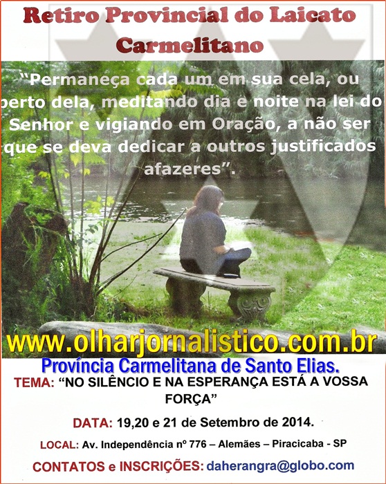 Diante disso tudo, temos a proposta de fazer um RETIRO DE SILENCIO E CONTEMPLAÇÃO, nos moldes carmelitanos, valorizando o silencio e a solidão. Solidão não no sentido ruim da palavra, mas na" Solidão Povoada" como dizia São João da Cruz, Ou seja "Solidão em Deus".