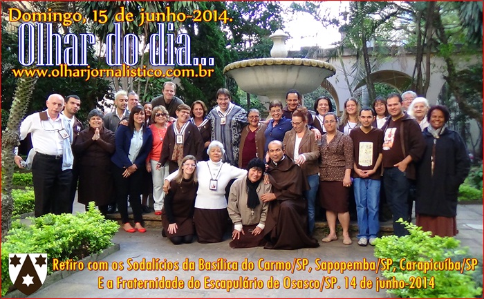 Primeiras fotos do Retiro com Frei Petrônio de Miranda no Convento do Carmo, SP, neste sábado, 14 de junho. Está participando deste dia de Espiritualidade o Sodalício da Basílica, de Sapopemba, de Carapicuíba e a Fraternidade do Escapulário de Osasco/SP. Nas próximas horas, veja novas fotos e vídeos aqui: www.olharjornalistico.com.br