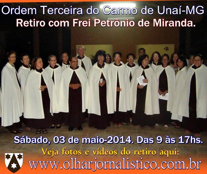 Como viver os votos de Pobreza, Castidade e Obediência na família e no trabalho enquanto leigos e leigas consagrados? É possível construir a fraternidade a partir do carisma carmelitano? Como superar as noites escuras na família, no trabalho e na vida espiritual à luz do poema, a “Noite Escura”, de São João de Cruz e dos santos e santas carmelitas? Estes foram os temas abordados pelo Frei Petrônio de Miranda, 0. Carm, no Retiro da Ordem Terceira do Carmo nesta sábado, 03, na cidade de Unaí-MG. Veja nas próximas horas vídeos e fotos. Aguarde...