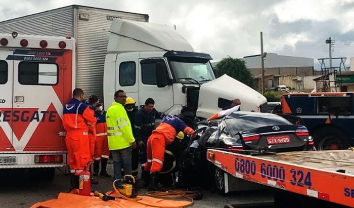 A polícia informou ainda que o condutor do caminhão seguia no sentido sul e o veículo menor ia na direção oposta. No km-804 da rodovia, a carreta tentou entrar em um posto de combustível, localizado do outro lado da pista, porém bateu no carro quando tentou atravessar a pista.