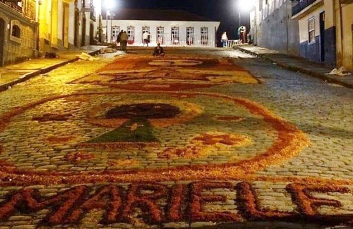 Os tapetes são tradicionais na cidade histórica mineira nas comemorações da Páscoa. Neste ano, um deles homenageava a vereadora e o seu motorista, Anderson Gomes, também morto no atentado.