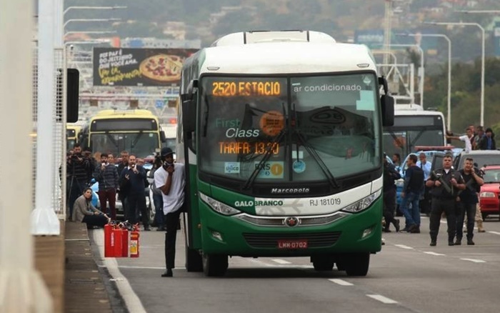 Segundo a Polícia Militar, há 16 reféns no veículo neste momento. Por volta das 6h, o ônibus da Viação Galo Branco ficou atravessado na Ponte Rio-Niterói. De acordo com o Bom Dia Rio, o sequestrador deu ordem para que o ônibus fosse atravessado na subida do vão central. Em seguida, mandou o motorista estacionar no acostamento, onde há um cerco policial.