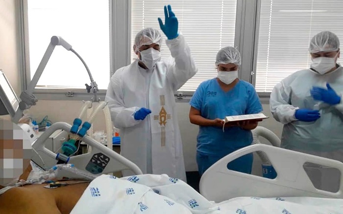 Na quinta-feira (10), o padre Josirlei Silva, capelão do hospital, atendeu ao pedido do paciente e realizou uma cerimônia do batizado e crisma no CTI. Médicos e enfermeiros acompanharam as orações em silêncio.