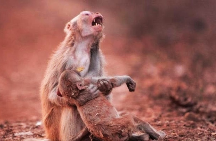 Um fotógrafo registrou, em uma imagem emocionante, o momento em que uma macaca parece chorar ao abraçar um filhote que ficou inconsciente, em Jabalphur, na Índia. O clique, compartilhado por Avinash Lodhi em seu perfil no Facebook, está comovendo internautas de diversas países.