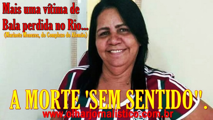 Morreu na noite desta segunda-feira, a moradora do Complexo do Alemão baleada na cabeça durante confronto entre PMs e criminosos na região. Marinete Menezes, de 55 anos, chegava do trabalho, quando foi atingida por uma bala perdida. A auxiliar de serviços gerais chegou a ser socorrida por vizinhos e levada para a Unidade de Pronto Atendimento (UPA) do Alemão. Depois, foi transferida para o Hospital Municipal Salgado Filho, no Méier, na Zona Norte da cidade, mas não resistiu ao ferimento.