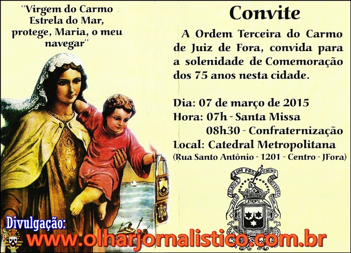 BOM DIA, BOA TARDE, BOA NOITE! Daqui a pouco, estou a caminho de Juiz de Fora- MG, para a celebração dos 75 Anos da Ordem Terceira do Carmo. Veja fotos e vídeos nas próximas horas no olhar: www.olharjornalistico.com.br (Domingo, dia 08, celebro a Santa Missa na Igreja do Carmo, na Lapa/RJ, às 8h e 10h).